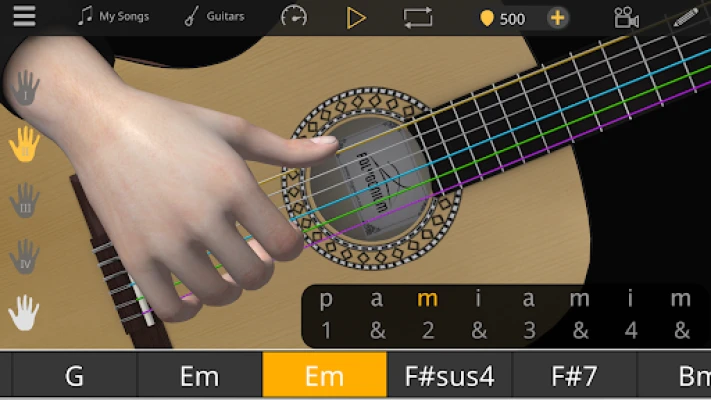 Learn to play guitar chords easy and fast with this interactive 3D ultimate guitar learning app. Unlike video guitar lessons, learn basic guitar chords and train your guitar skills simply by observing the correct guitar playing techniques using rotate and zoom features in Guitar 3D. View fingers from different angles and capture the correct finger positioning and movements in vivid detail. Strumming and fingerpicking techniques are also demonstrated while using the auto chord progression playing feature in the app. Guitar 3D Basic Guitar Chords training app is specially designed for visual learners.